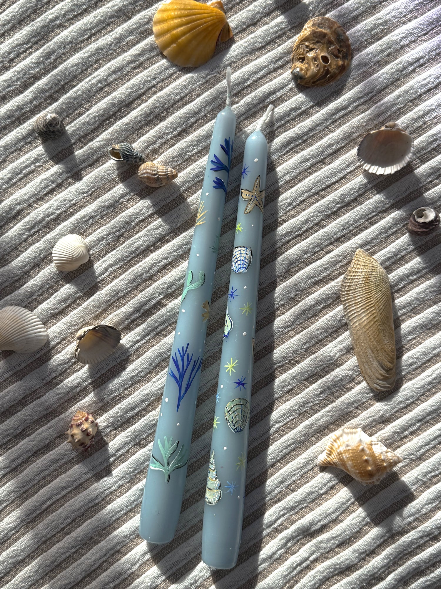 Blue & Ivory Hand Painted Wedding Dinner Candles