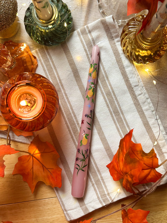 Autumn Hand Painted PinkDinner Candle