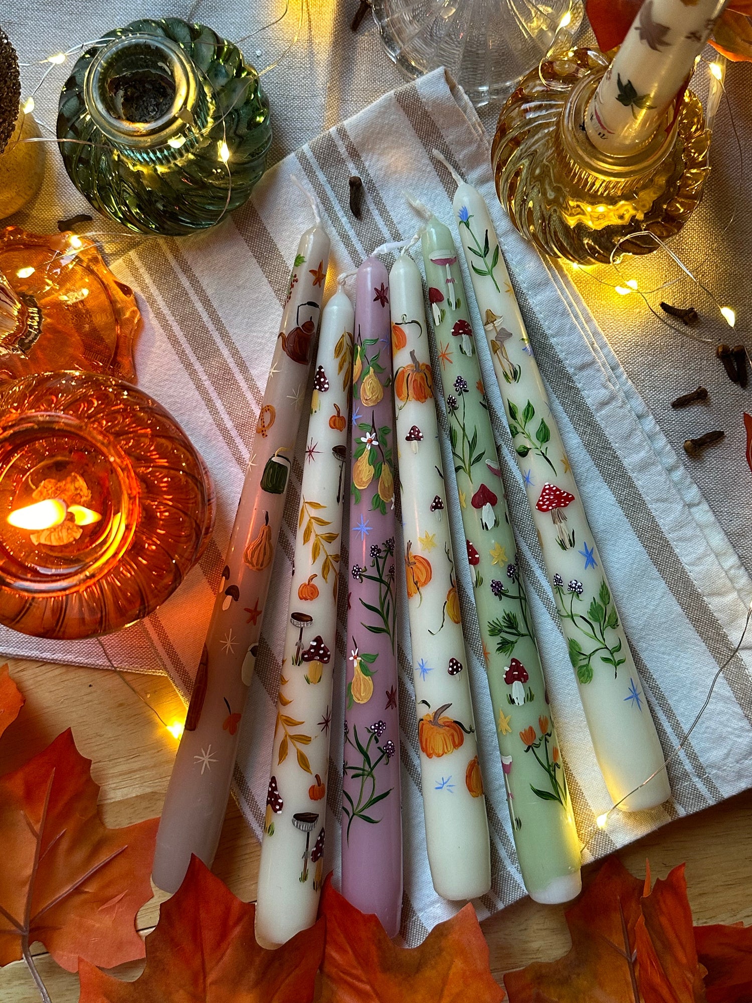 Welcome the cozy season with our exquisite Autumn Hand Painted Candle Collection....