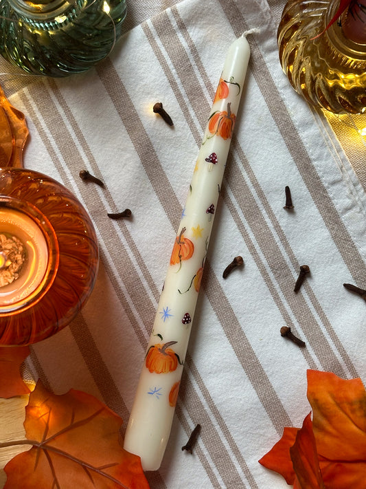 Funky Pumpkins Hand Painted Ivory Taper Dinner Candle