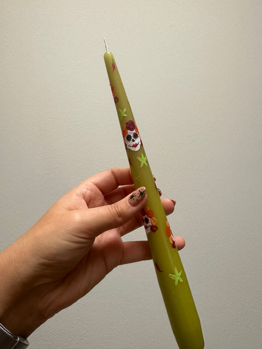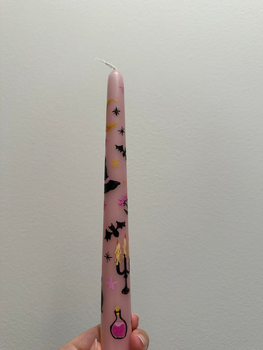 Funky Pumpkins Hand Painted Ivory Taper Dinner Candle