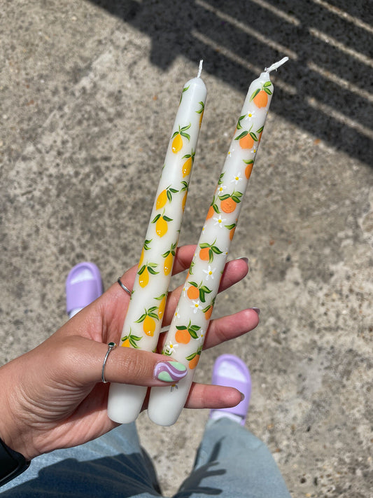 Lemon zesty & Orange Bloom Hand Painted Candles