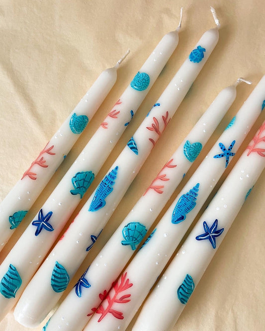 Ocean-Inspired Hand-Painted Candle Set – Coastal Collection