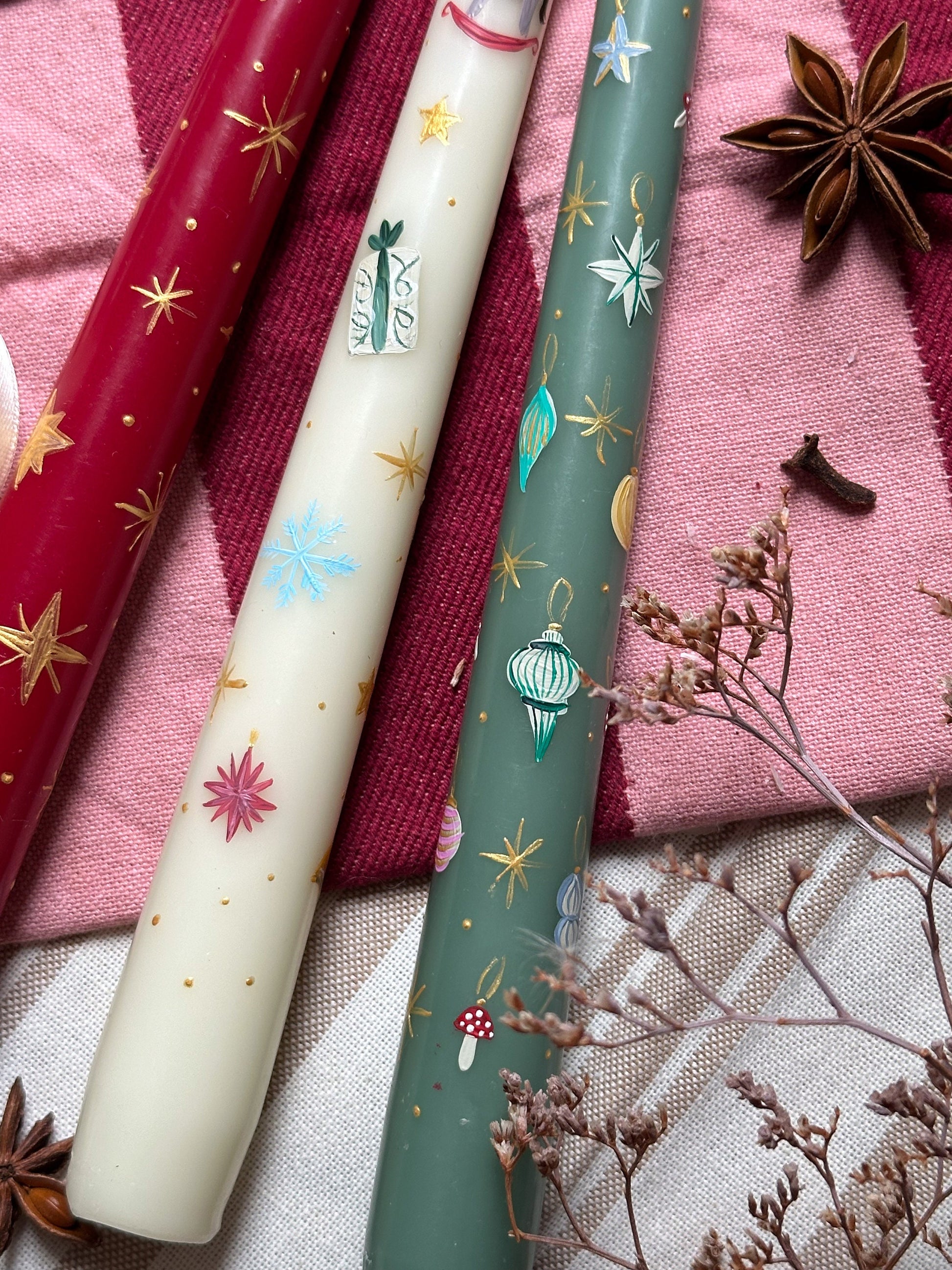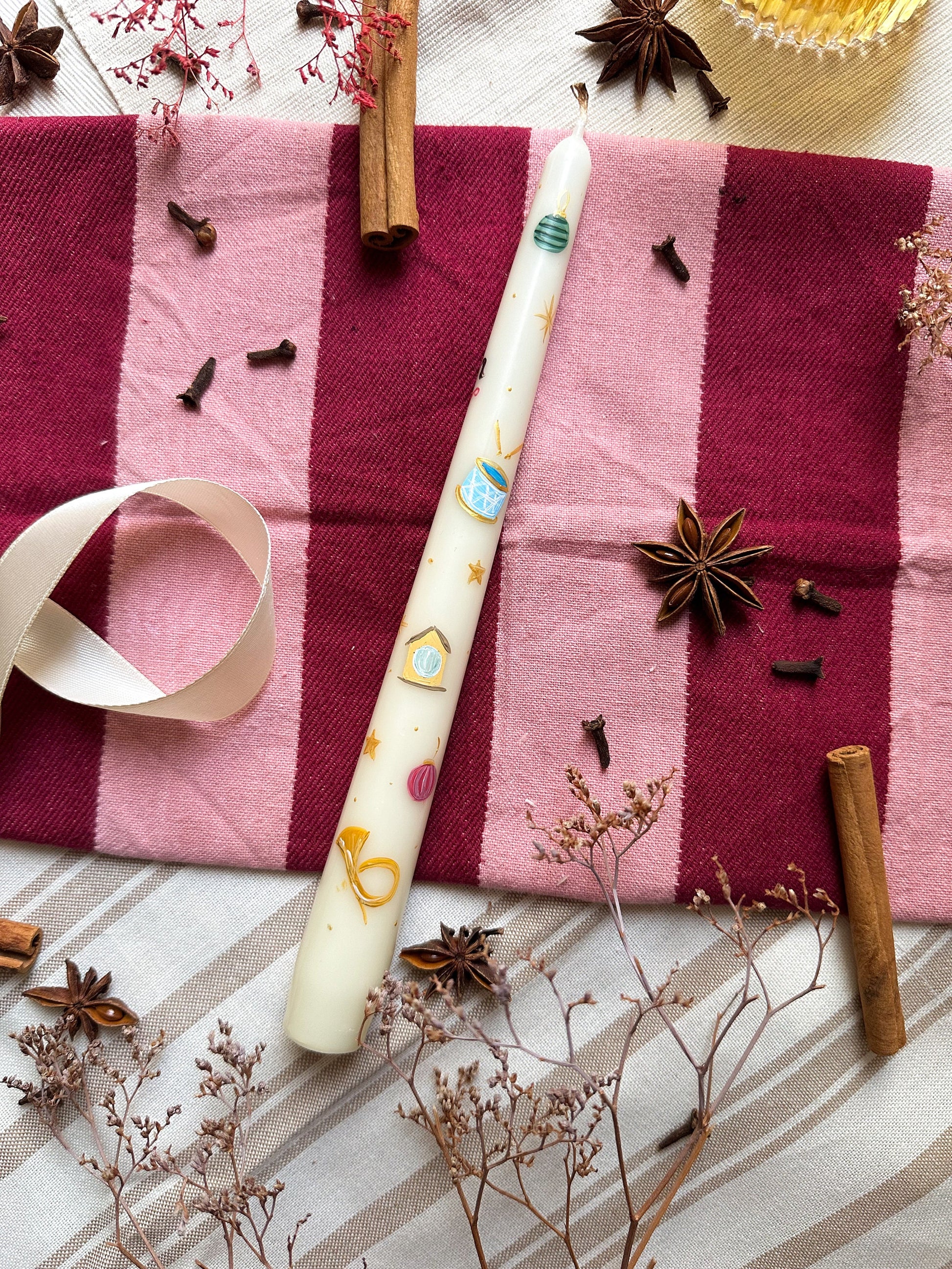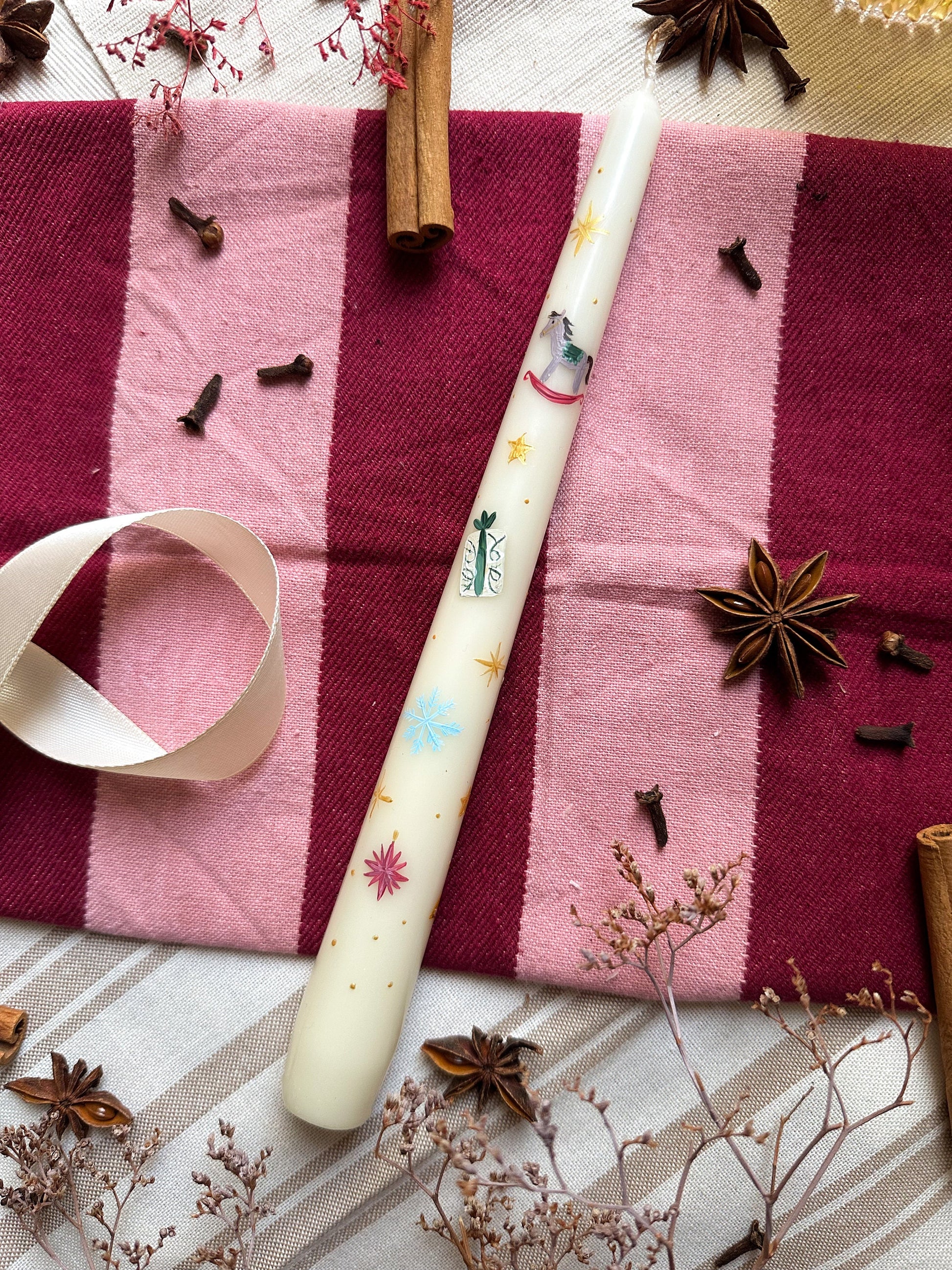 Hand - Painted Taper Candle, advent dinner candle.