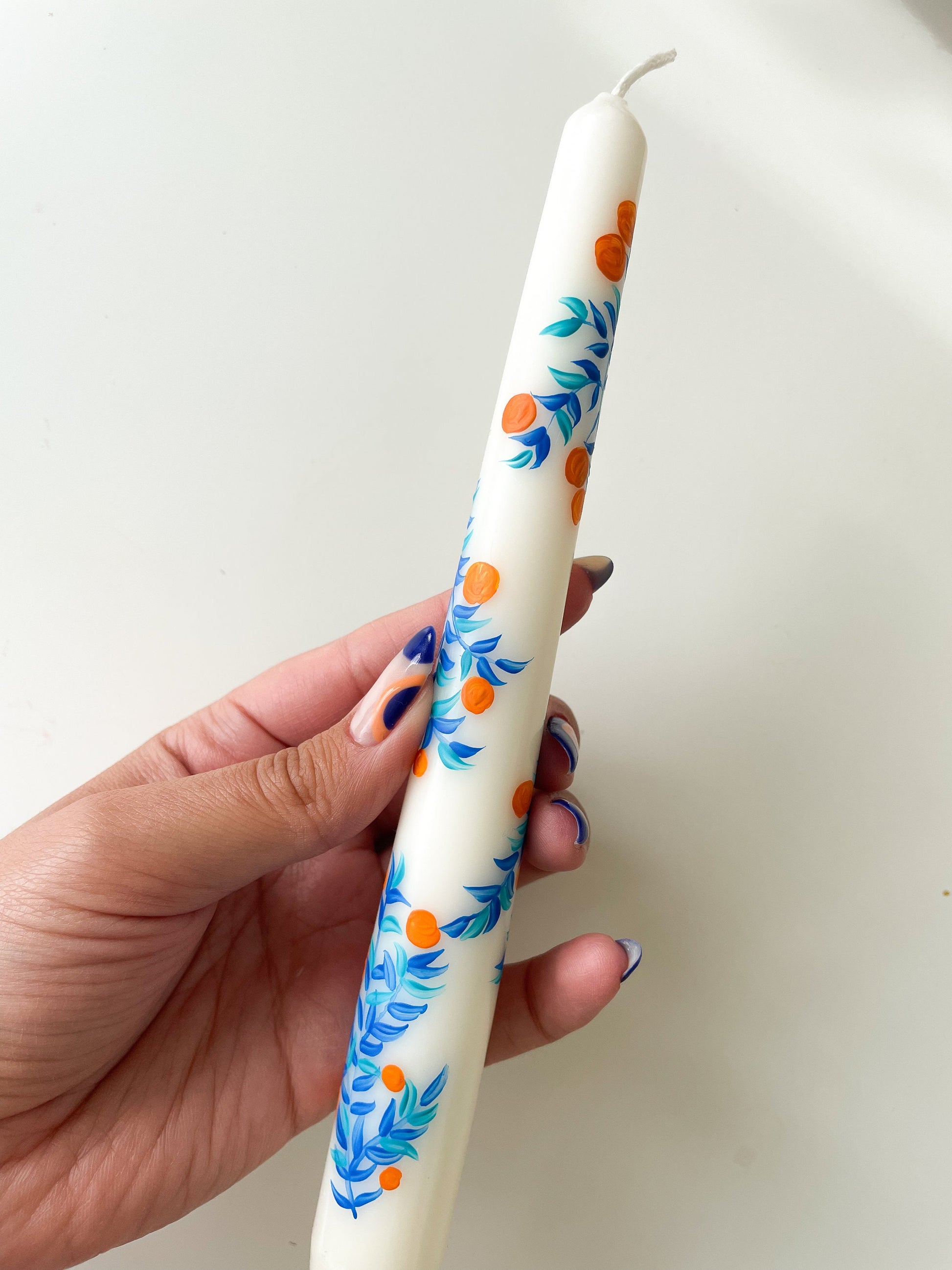 Hand - Painted Taper Candle, illustrated with summer patterns.