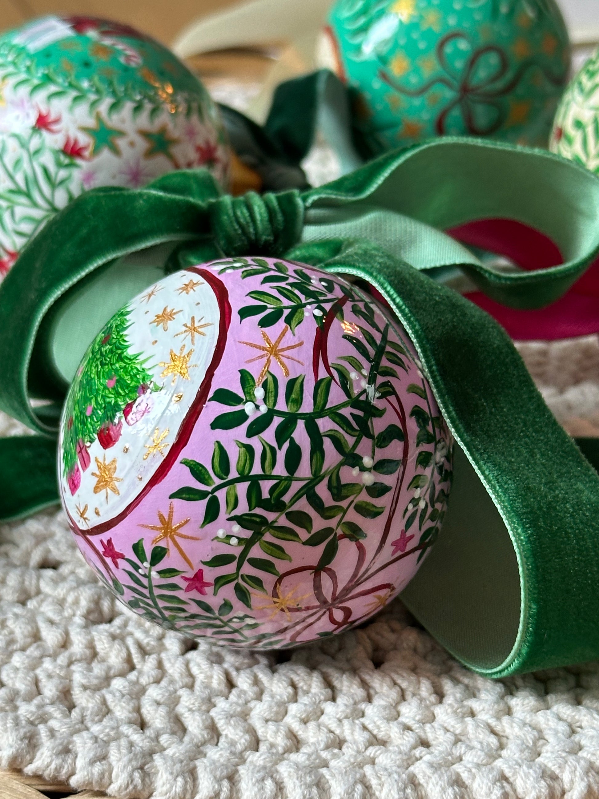 One of a Kind, Luxury, Hand Painted Christmas Ceramic Bauble
